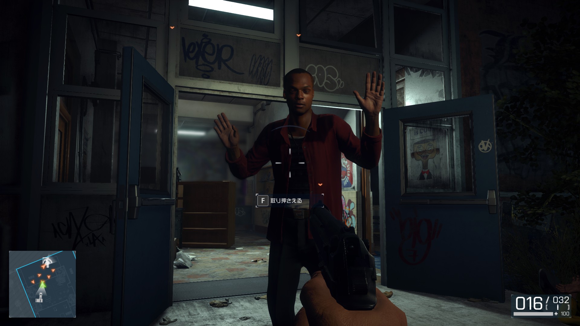 警告しなくても背後から近づけばテイクダウンできるけどちゃんと逮捕したほうがポイントが多い。