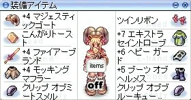 武器と盾は狩場によって変えるけど、服はピッキ固定です(・ω・)